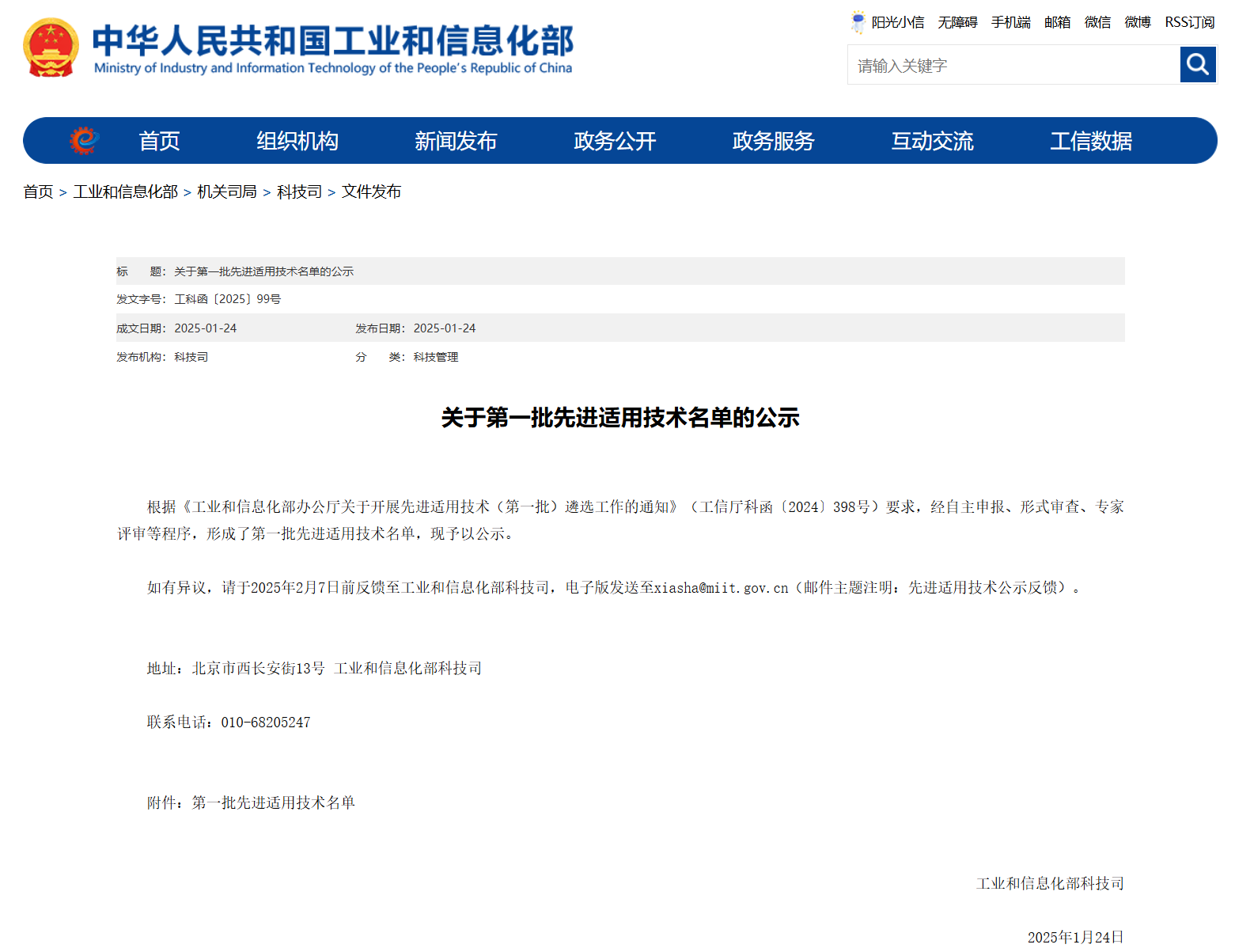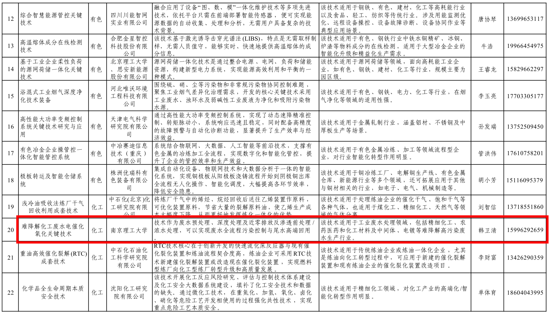 近日,工业和信息化部(工信部)公布了“关于第一批先进适用技术名单的公示”,由我公司专家韩卫清教授牵头申报的“难降解化工废水电催化氧化关键技术”成功通过评审并完成公示,正式获评国家级先进适用技术。这一荣誉标志着该技术在环保领域的创新性和应用价值获得国家权威认可,进一步提升了我司在工业废水处理领域的技术领先地位。