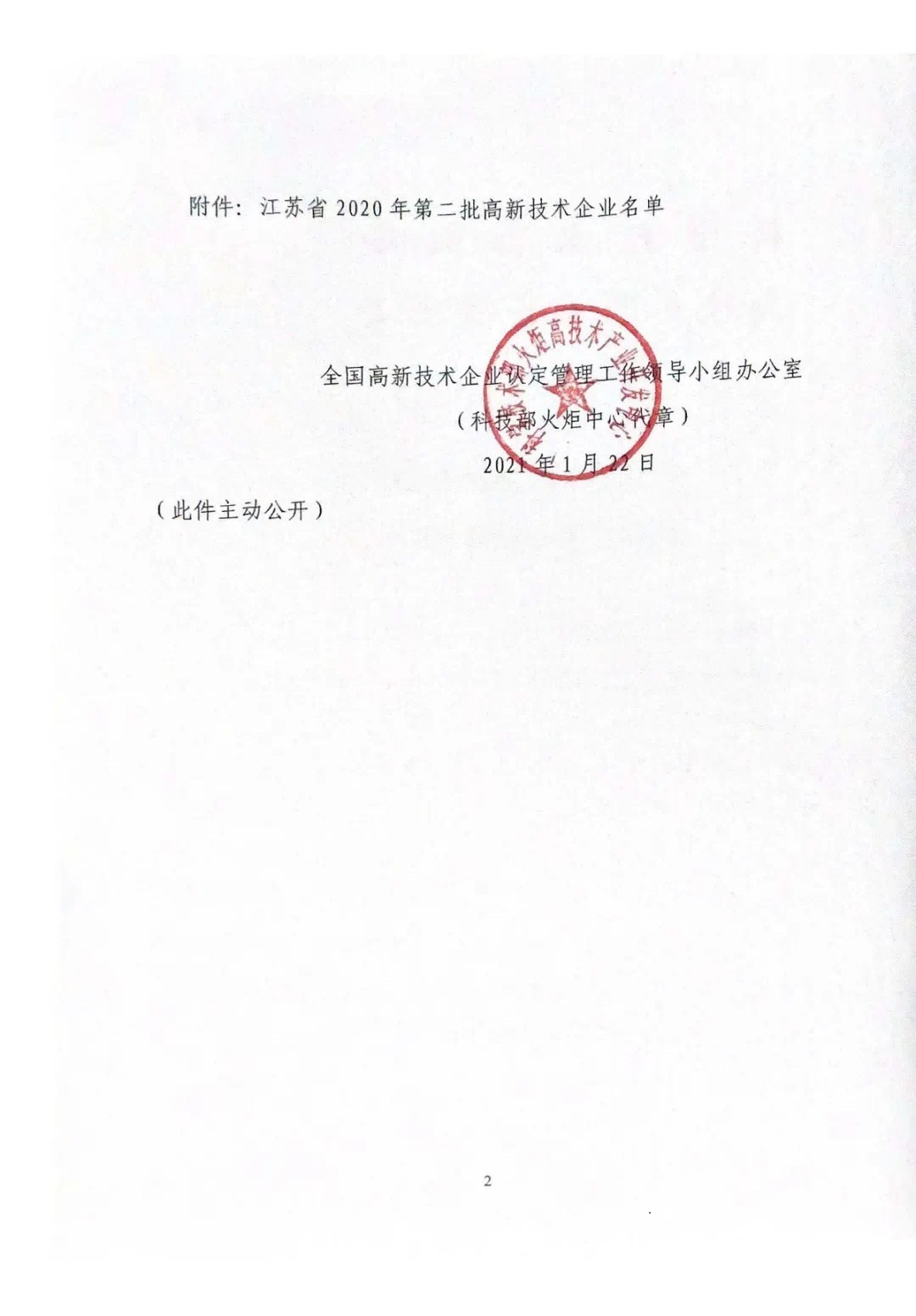 根据《关于江苏省2020年第二批高新技术企业备案的复函》(国科火字【2021】40号)批复文件,南京润科环境有限公司认定通过国家级高新技术企业,获科学技术部火炬高技术产业开发中心备案。