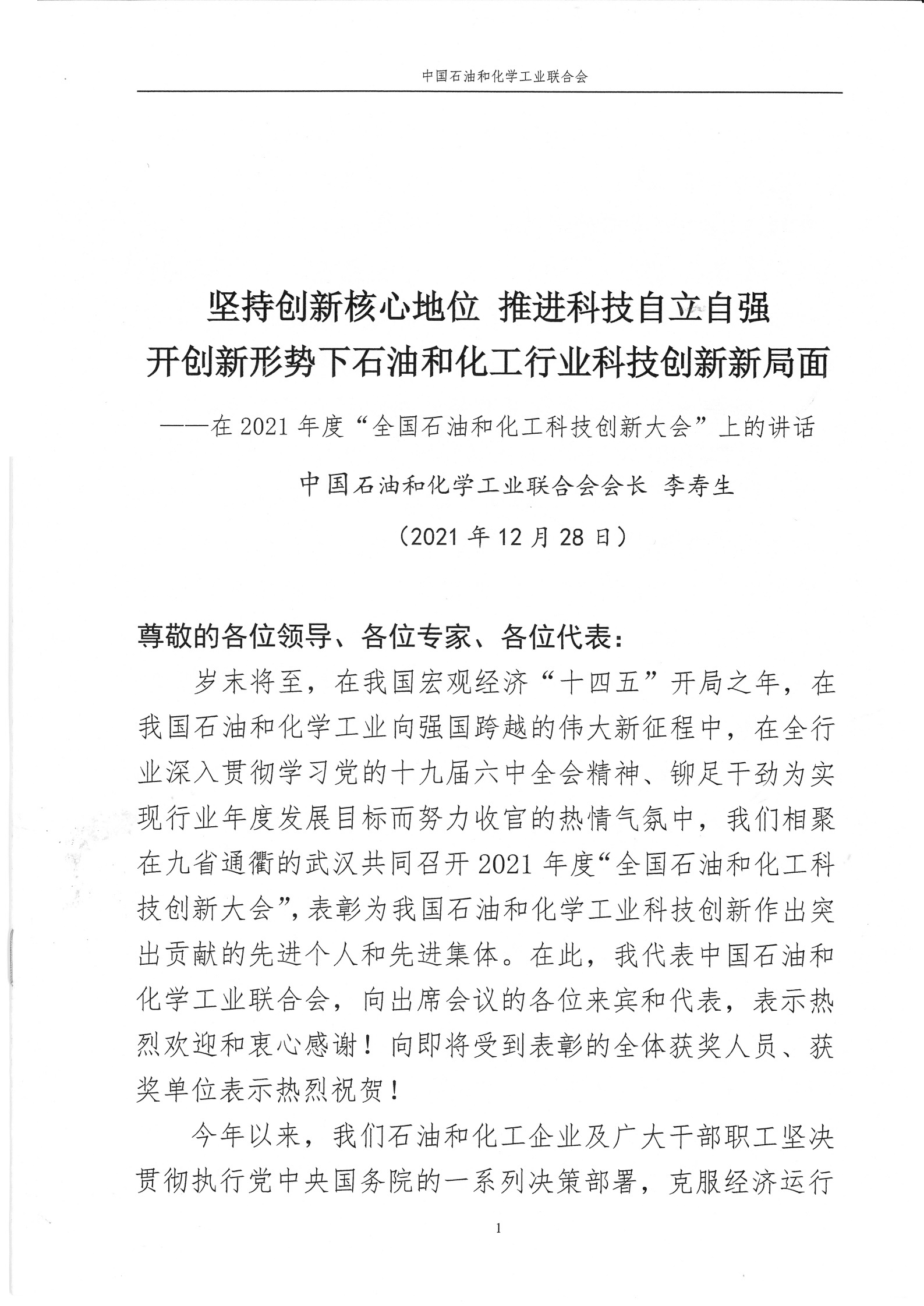 2021年12月27日,2021年度“全国石油和化工科技创新大会”在武汉召开。我公司专家韩卫清教授受邀参加《2021全国石油和化工科技创新大会》,并做《电化学界面调控的资源化应用及绿色发展》报告。